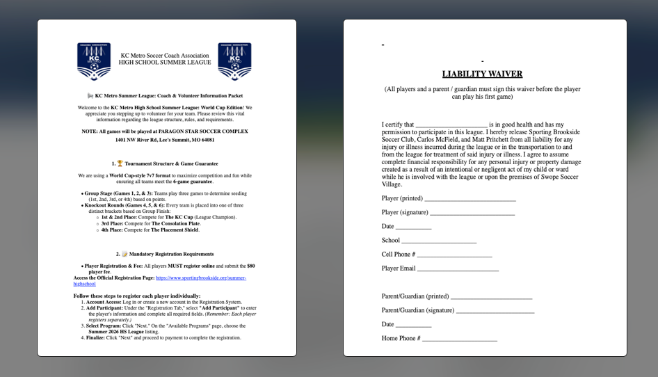 Powered by the KC Metro Soccer Coach Association with the objective of creating a competitive, yet fun league to prepare you for your HS season.